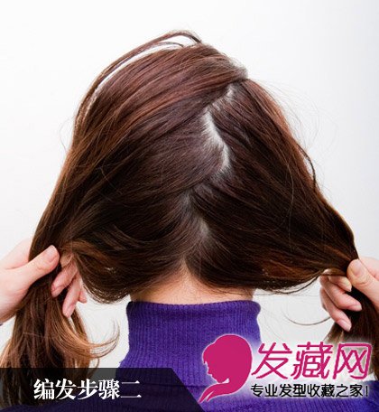 step2:按照图中所示按照不规则形状将头发从脑后分成两部分。
