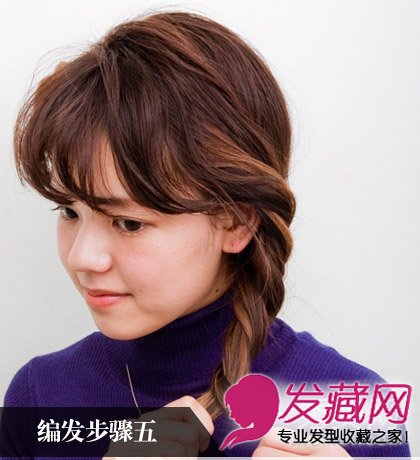 step5:最后将左侧的发束全部扭转成一根完整的发辫。