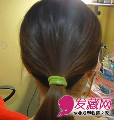 1、第一先把头发梳理整齐后,在脑后简单扎成一个小马尾形状。