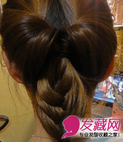 3、然后把剩下的马尾部分编织成简单的三股发辫。