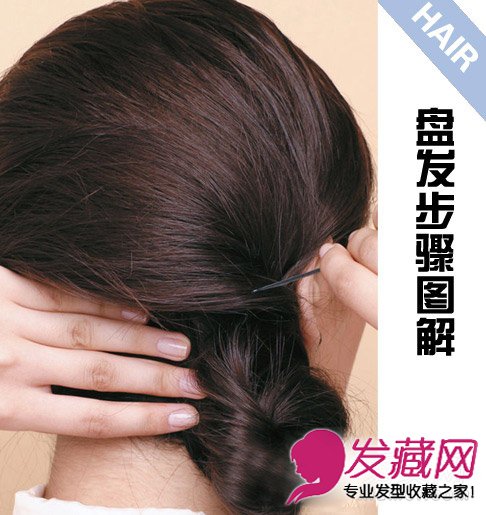 step3:最后将头发扭转成发包再用发夹一一固定。