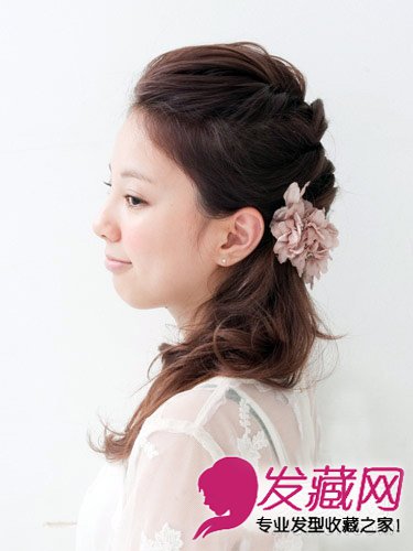 剩下近半的卷发垂落在肩头,女人味十足。加上发饰点缀更显浪漫感。