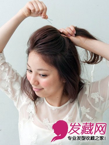 step3:扭转后向前轻推成发包,再用发夹固定。