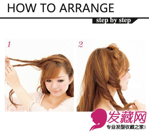 step 2:用上面同样的方式扭转出两束头发。
