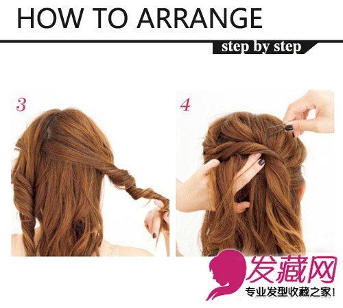 step 4:将扭转发束用黑色发夹固定在后脑勺,就完成甜美的公主头造型。