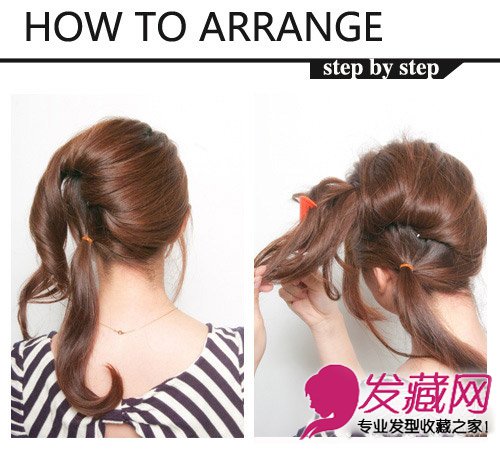 step 7:上面头发发尾留着,形成侧边高低马尾。