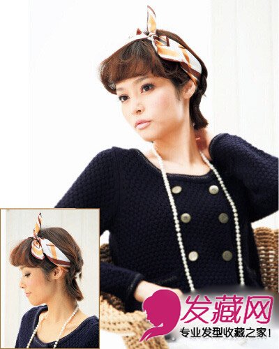 谁说短发不能百变,其实只要简单的一条发带就可以让短发变得时尚。(如果妹子有丝巾也可以)
