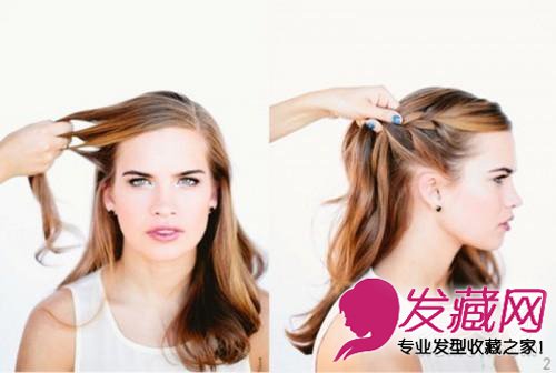 1、先把头发在左边划分一条线梳理清,之后从上面用手指抓出三小股头发,随即在下方右边抓一小股头发。