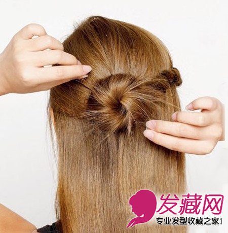 5、发量多的可以直接卷成花苞,然后用几个卡子固定好。