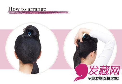 step1:取出前额的刘海,将脑后的头发绑成侧边马尾。