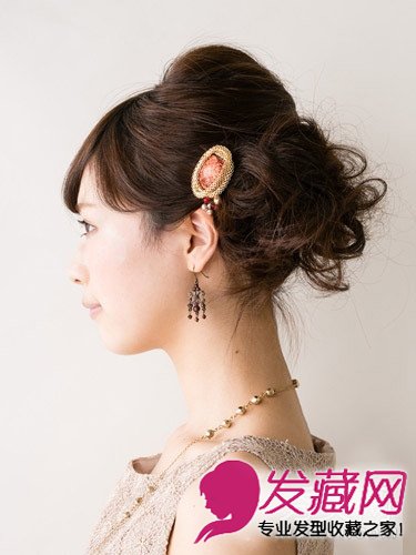 侧边效果。脑后的盘发华丽妩媚,露出脖颈尽显秋日清爽感。