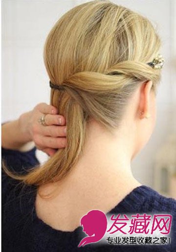 3、将剩余的头发合并后全部选取,按照步骤2的样子,缠绕在发带上。