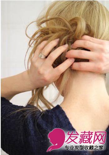 5、然后,拨动剩下的头发形成一个球形的发圈。