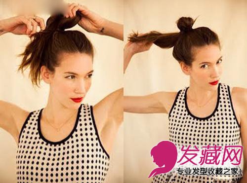 1:将头发扎成一个马尾辫,然后将马尾辫对折扎成一个小发包(注意:要留部分发尾出来)。