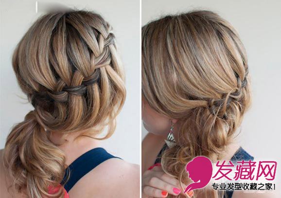 7:将之前垂下来的发束缠绕在马尾辫上,并将发尾塞入皮筋内。