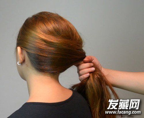 Step1:把头发梳到头部一侧,用手握住头发根部。