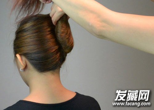 Step5:将头发围着大拇指盘起来形成一个圆锥形,握紧。