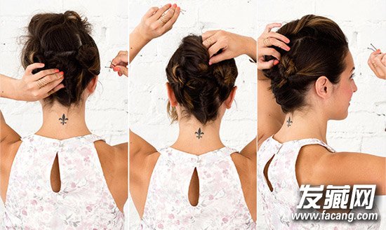 ¡¡¡¡step6£º½«×îÉÏ·½µÄÍ··¢ÏòºóŤ¾í¹Ì¶¨£¬Ê¹ÆäÅîËɵØÓëºó·½µÄÍ··¢ÎÞ·ì¶Ô½Ó¡£