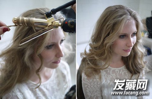 用卷发棒把头顶上的发丝卷一卷,增加点层次感。