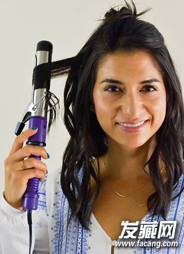 取一小缕头发,用卷发棒缠住发尾两三寸的地方,以与地面斜45 度的方向向上做纵外卷,保持几分钟,然后松开。