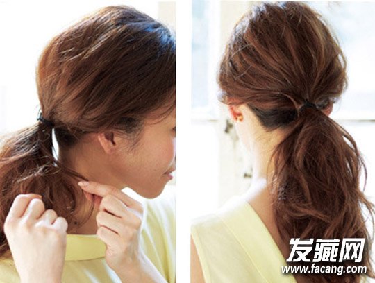 step3:用手指轻撕马尾头发,让马尾变得蓬松。