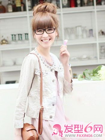 知性的可爱团子头,减龄齐刘海在受到大多女生的喜爱,亚麻的深棕发色配搭黑色眼镜,带来ol式舒爽知性,淡然的微笑,给人更舒服,更甜美有女人味。