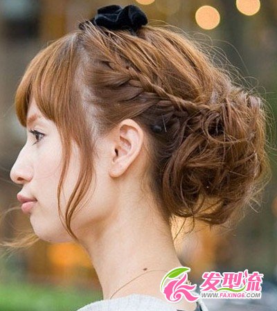 半月牙侧编发造型,立体的轮廓宛如一顶优雅的帽子斜扣在头上。侧边的蓬松卷发,女人味十足,不规则的扎发造型给你不一样的视觉享受。