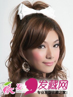 取一半发量盘成冲天发束,点缀上亮眼的白色蝴蝶结,十分可爱哦!