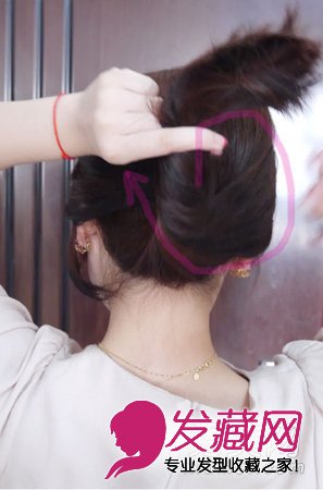 顺时针转并将发束按照箭头的方向挽起,不要弄太紧,耳下有些弧度才好看