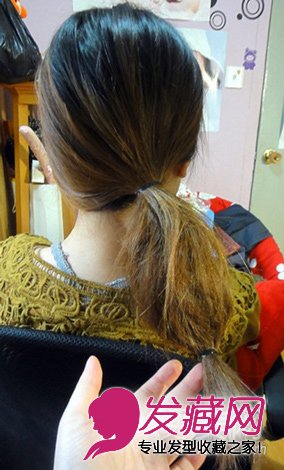 如图,扎一个侧马尾,再在离尾部的地方扎一个小皮筋。关键还要用梳子到毛哦 否则做出来没有这么的的苞