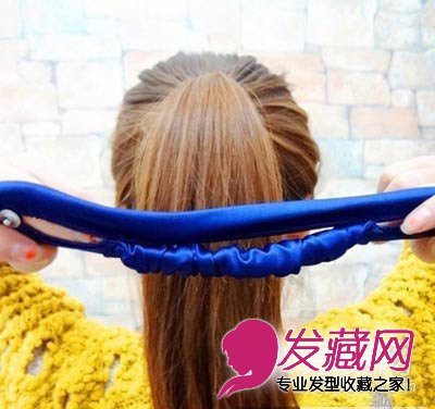 适合大脸女生的可爱丸子头盘发步骤二:然后我们准备一个盘发的神器,市面上都有卖,把盘发器拉直,把中间打开。