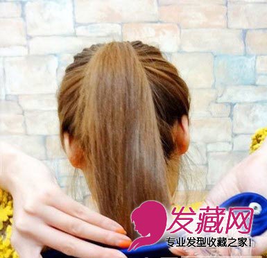 适合大脸女生的可爱丸子头盘发步骤三:接着把马尾放进盘发器的口子里面,用手压紧。