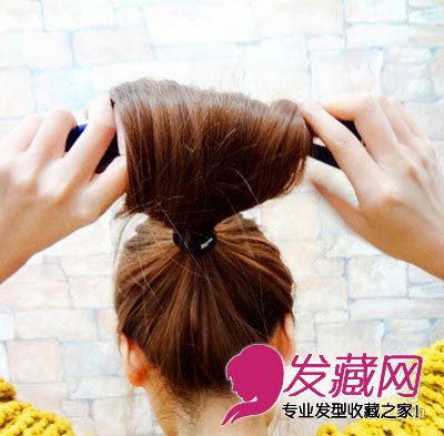 适合大脸女生的可爱丸子头盘发步骤四:放进去后把盘发器往山卷起,注意卷的时候不要太紧,不然盘出来的丸子头就会显得太死板。