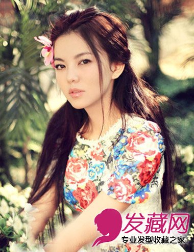 长发披肩的李湘似一朵出水的水仙,飘逸的垂肩发丝,花朵装点,散发出少女般的清雅柔美气息。