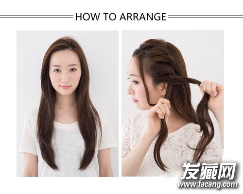 step 2:刘海后面取两束头发进行扭转,边扭转边加入下面的头发。