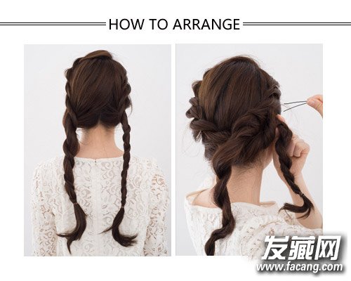step 3:两边的头发做同样的处理,打造出两束小辫子。