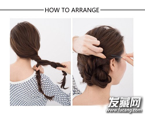 step 3:两束辫子再糅合在一起,扭转成大发束。