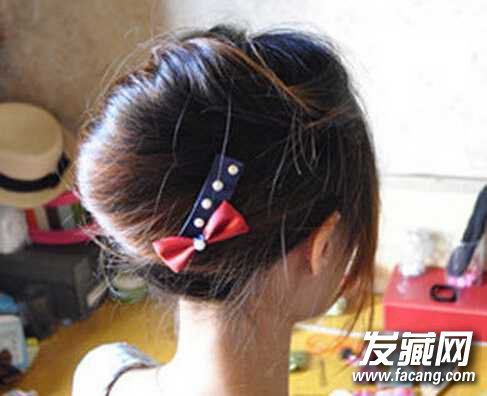 step7、稍微整理一下,再将两边的头发往外拨以遮住盘发器,注意不要把头发弄得太乱哦,最后别上小发饰就可以了,是不是很好看呢?;