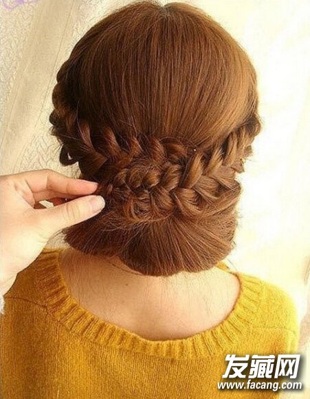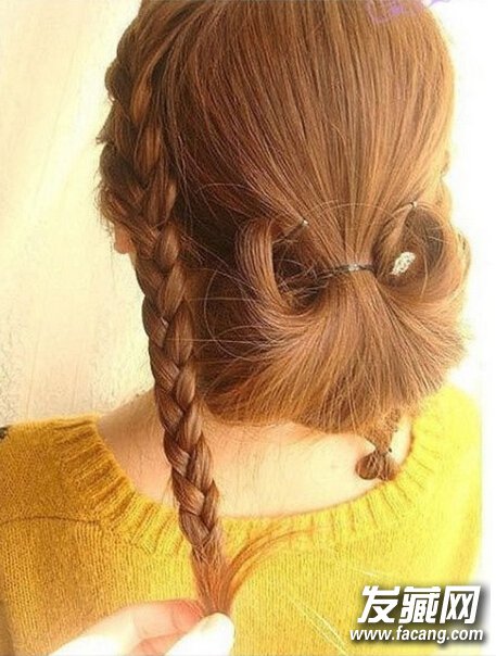 step7、记住,“扇形”发髻两侧一定要固定好,否则很容易散哦,若你怕发髻会散,也可以在里面将发髻加固;