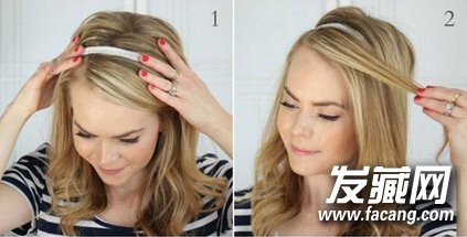温馨tips:发带一定要使用一些相对较紧实的材质类型,因为整个发型全程都不需要一字夹或橡皮圈来固定,所以发带的选择尤为重要,而发带的颜色可以根据自己的发色和造型进行选择喔!