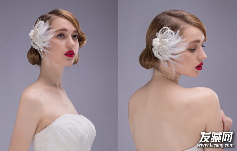 韩式新娘盘发01》》》》》柔顺光滑的浅金发色能衬托出新娘白皙的肤色特点,刘海处的卷曲外翻设计十分具有复古高贵的气质,而向内盘起的低盘发优雅大方,简约的设计展现出不简单的风格。