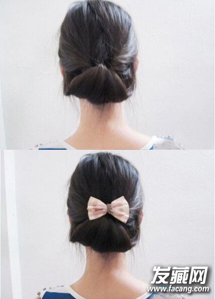 【韩式盘发step5】夹子可以使用多些也无妨,一般不会看出痕迹,主要是要牢固稳定住盘发造型即可。