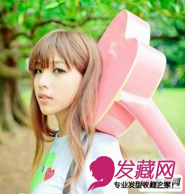 带有着点点亚麻发色的这款奶茶色染发发型设计图片,一把粉白色六弦琴,发尾的碎发修枝塑造了中长发的随性感,将女生的音乐人的气质塑造进去了,很是时尚的潮人气息。