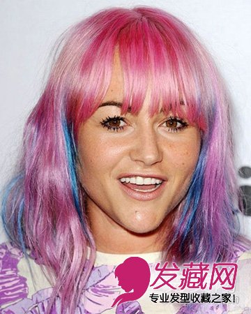芭比发色你刚尝试么,这款粉色晶莹的亮意,相信怎么都会有闪爆眼球的效果吧。渐变的色彩至发梢来的越来越淡,甜美之下还有不羁的痞女性格。