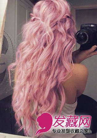 超美的粉红色卷发,淡淡的粉红色非常适合甜美型的女生,不管搭配什么样的衣服,绝对让你造型甜美,非常引人注目