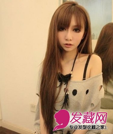 随性长直发,的微微露出额头的刘海,浅亚麻色的发色,整体看起来是既萝莉又潮流。