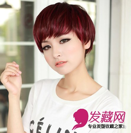 这款时尚短发发型+红色挑染,炫丽吸睛。刘海修剪得碎碎的,很精致。