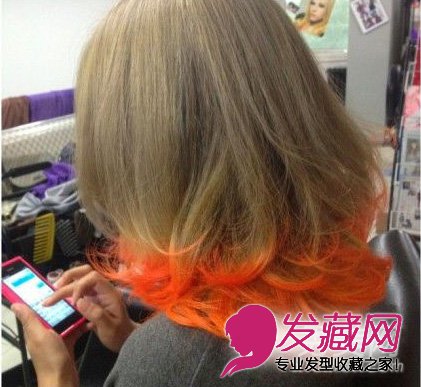 挑染虽说在染发中一直都很盛行,但是以往的挑染只是挑取头发中间的几束头发,染出不同的颜色。现在时兴的挑染发型,实在发尾横向染出不同的颜色。不仅增加了整体的造型感,也使得头发看上去更有层次感,更有厚重坠感。