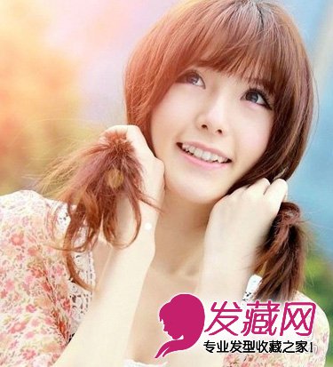 红色头发绑扎的可爱双马尾,整齐短刘海,在发帘位置剪薄,凸显无辜双眼,明亮水润,红色双马尾以直发绑扎,可爱无比。