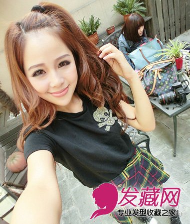小清新的学院派,散肩的卷发,学这位非主流美女扎起来,不仅凉爽,而且显活力和可爱。
